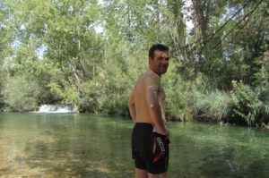 Todo gran viaje merece un gran colofón. El nuestro lo tuvo. Cuando llegamos a Villalba de la Sierra, donde concluía la segunda etapa y por tanto el viaje, el sol calentaba. El cansancio era notable, pero satisfechos por el fin de semana. Entramos a Villalba por un viejo puente sobre el Júcar, y allí estaba. El río hacía un pequeño remanso con una pequeña playa. Los lugareños deben refrescarse allí, pensamos, pero a esa hora no había nadie. El sol se colaba entre las hojas de los árboles. El lugar era perfecto. Sin pensarlo dos veces, buscamos el acceso a aquel pequeño paraíso. Nos despojamos de los maillots y nos zambullimos en las frescas y, por aquellos lares, transparentes aguas del Júcar. Maravilloso.